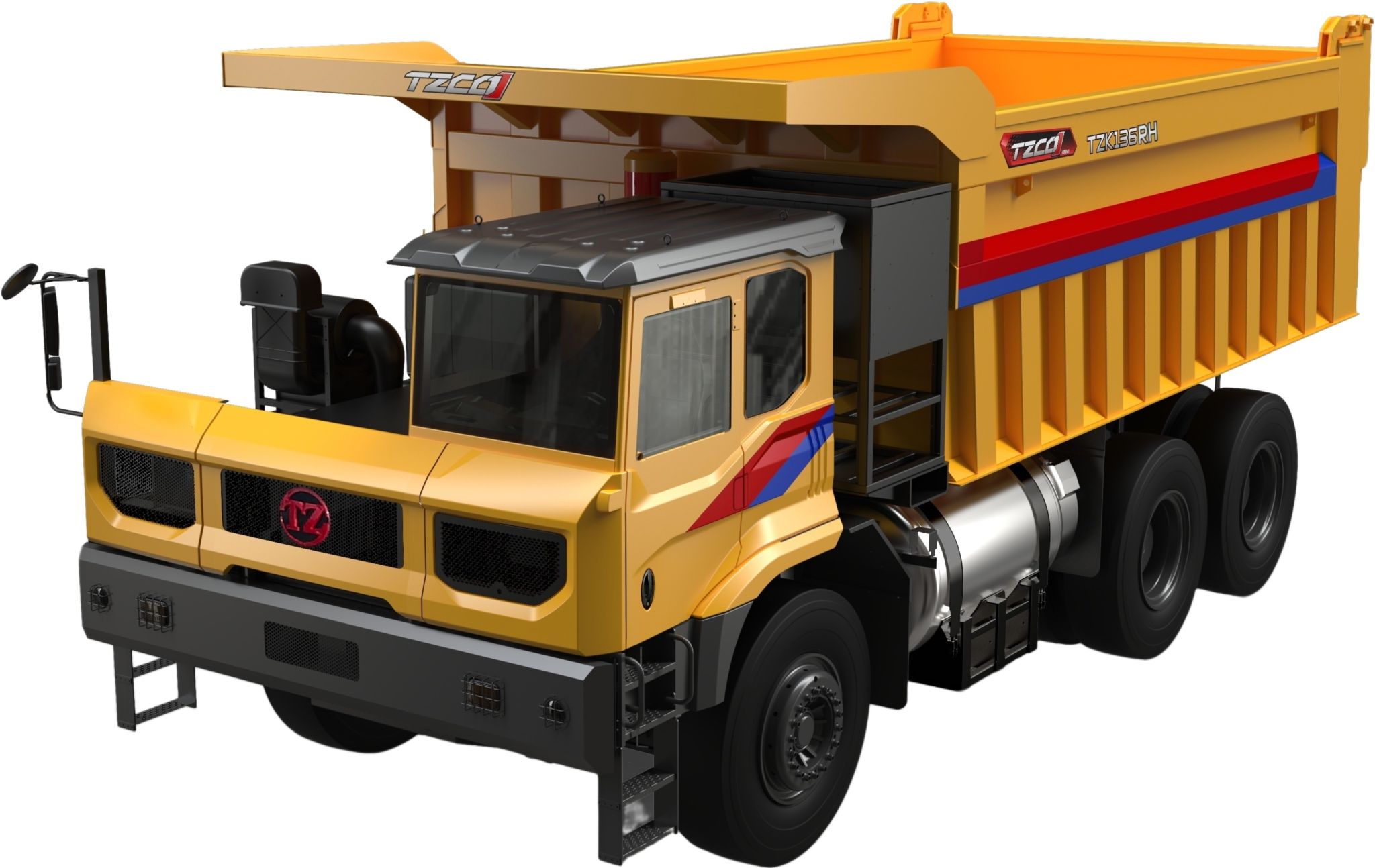 宽体车自卸车源于普通公路自卸车,介于大型矿用刚性矿卡与普通自卸车之间,主要应用于露天煤矿、露天金属矿、砂石骨料矿、大型水电及基建项目、恶劣道路及泥泞路面矿山施工等,具有安全高效、承载力强、坚固耐用等优点