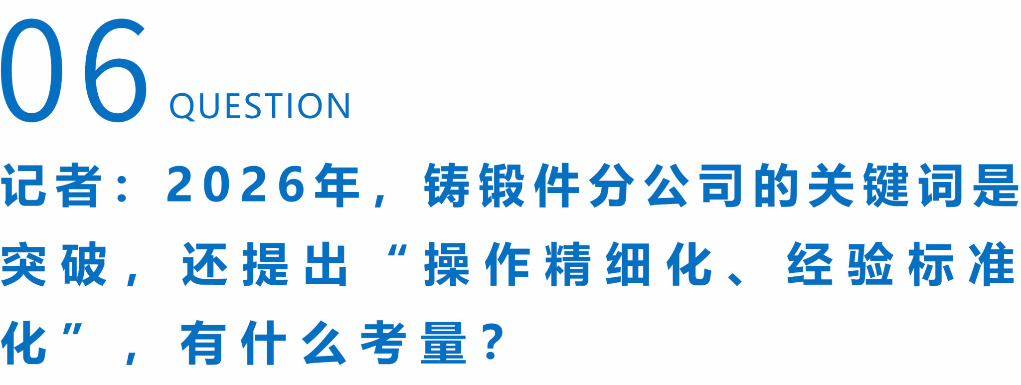 杜云岗:陶董事长上一次来铸锻件调研,提出“先定标准、再说好坏”的要求,一针见血。热加工板块,这么多年下来,“少许”“适量”这种含糊其辞的习惯还有很多。同一个活儿,三个人能干出三个样,今天能干好明天不一定。你说这怎么“突破”?