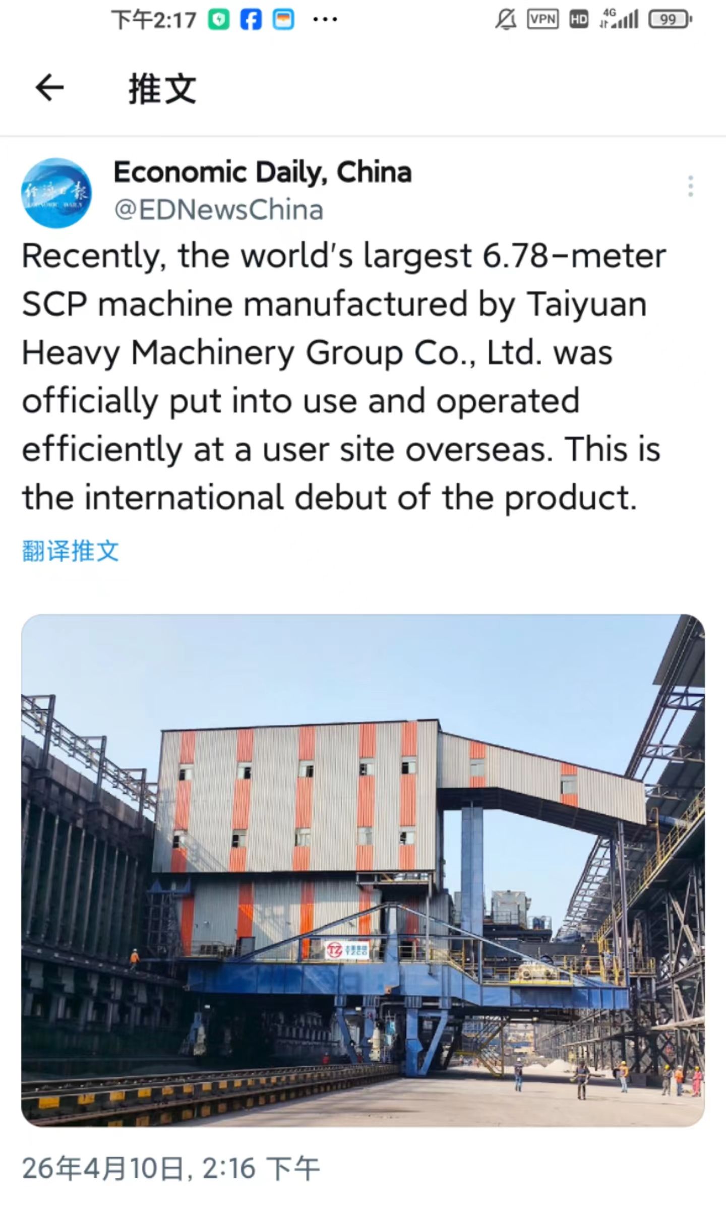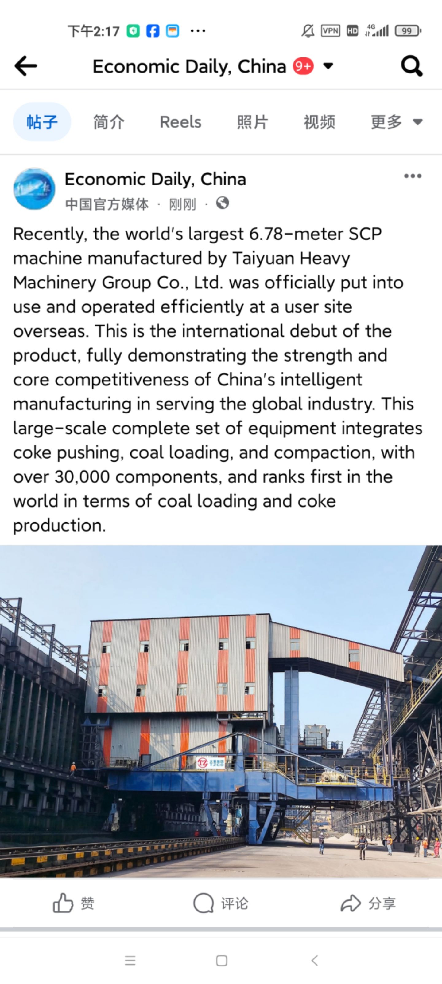 近日,拥有千万粉丝的经济日报海外媒体矩阵关注太重焦炉设备。这一消息通过其Facebook、X、Instagram全平台同步发布,向世界展示“太重智造”的硬核实力。